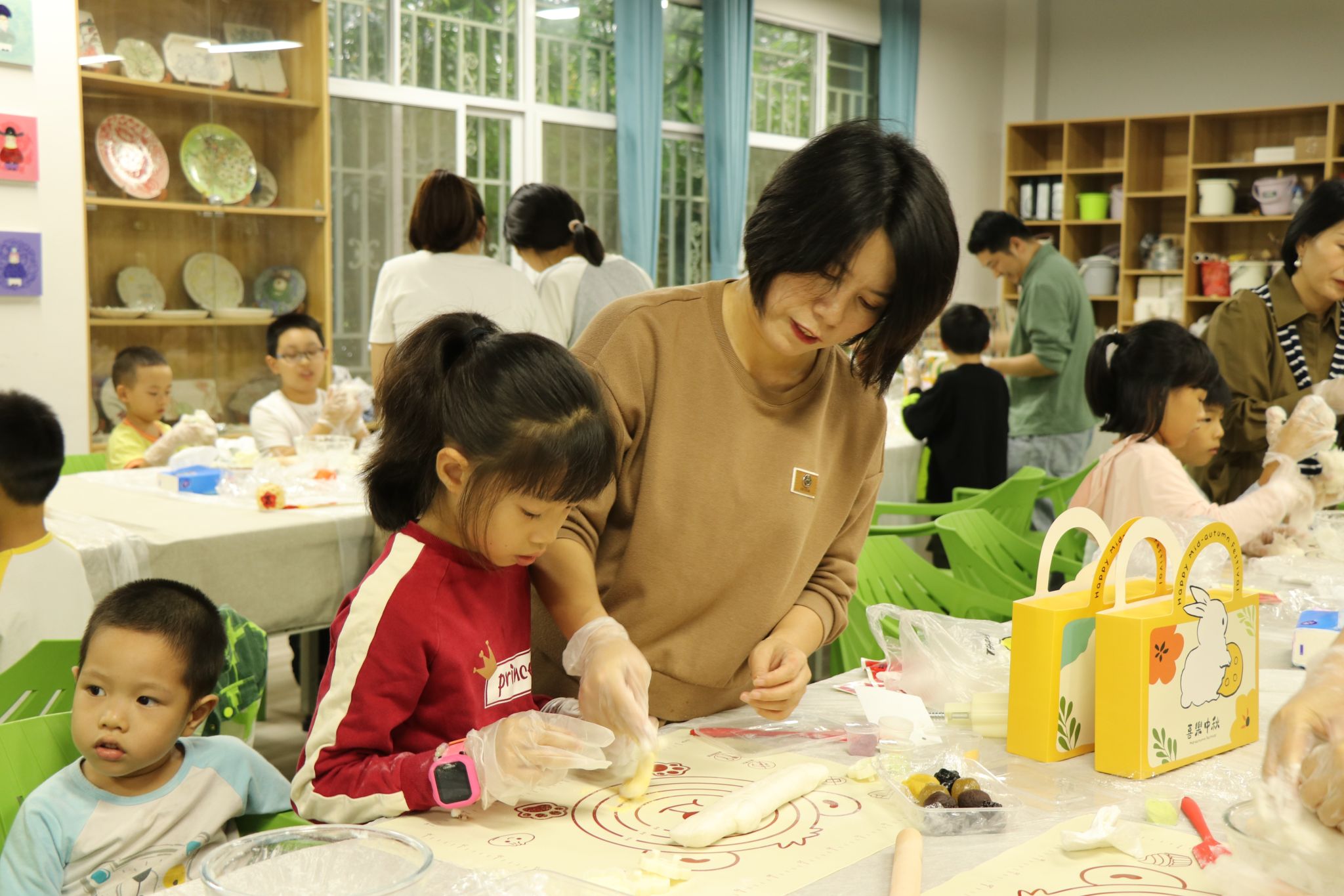 秋风送爽,丹桂飘香,恰逢中秋节即将来临之际,为了庆祝传统佳节,喜迎中秋。艺术设计与传媒学院“生活美·加油站”于2023年9月23日在艺术楼811教室开展了“悦享中秋”月饼DIY的亲子活动,以此来感受中秋这个传统节日的魅力,亲子间的活动也更能促进亲子间的关系,让亲子关系更进一步。本次活动吸引了13组亲子家庭积极参加。