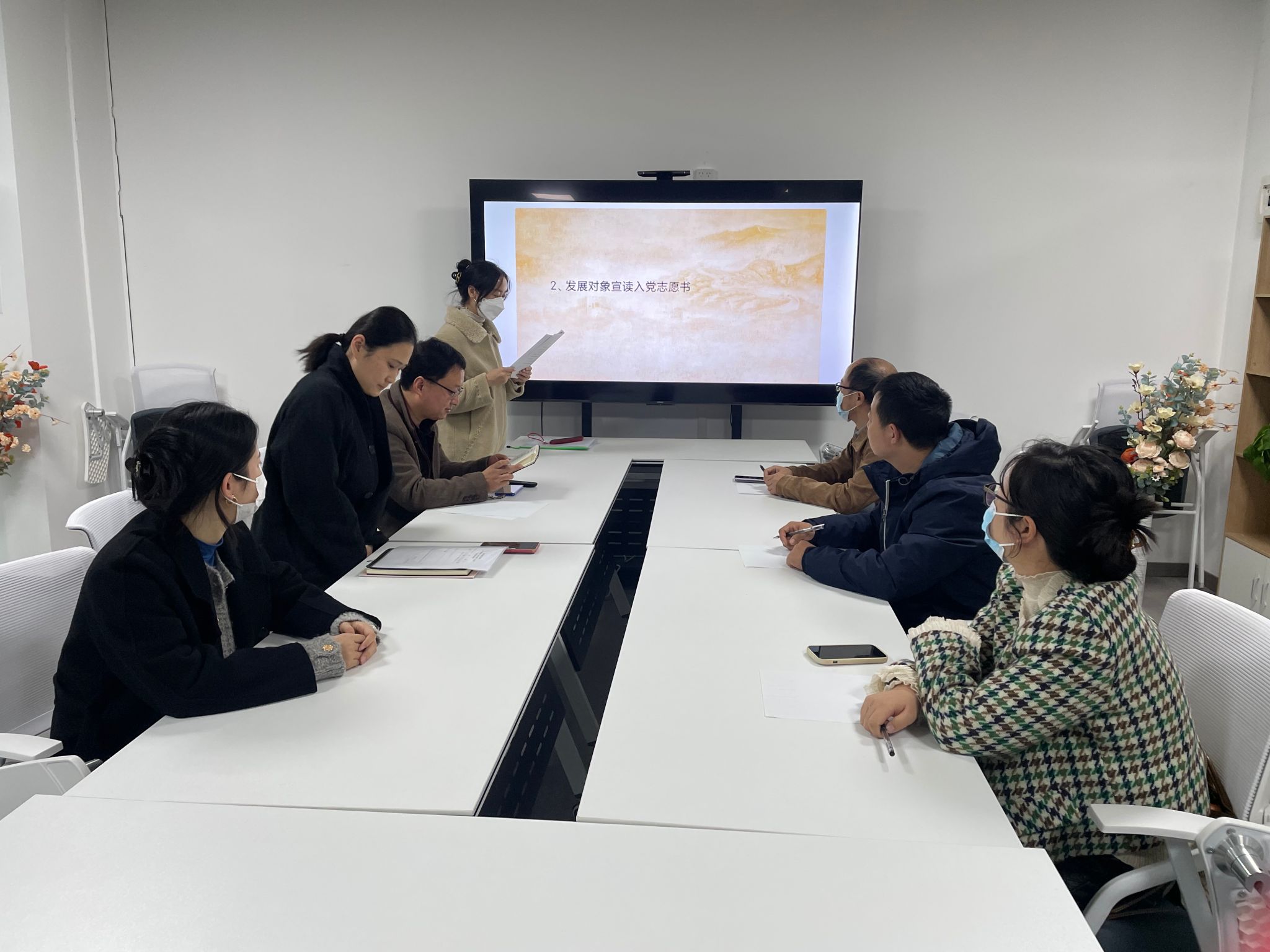 会议还讨论了吸收王密同志入党的相关事宜。党支部书记、入党介绍人分别介绍了该同志的综合审查情况和其他材料,其他党员同志充分发表意见,通过投票表决,一致同意吸收王密为中国共产党党员。