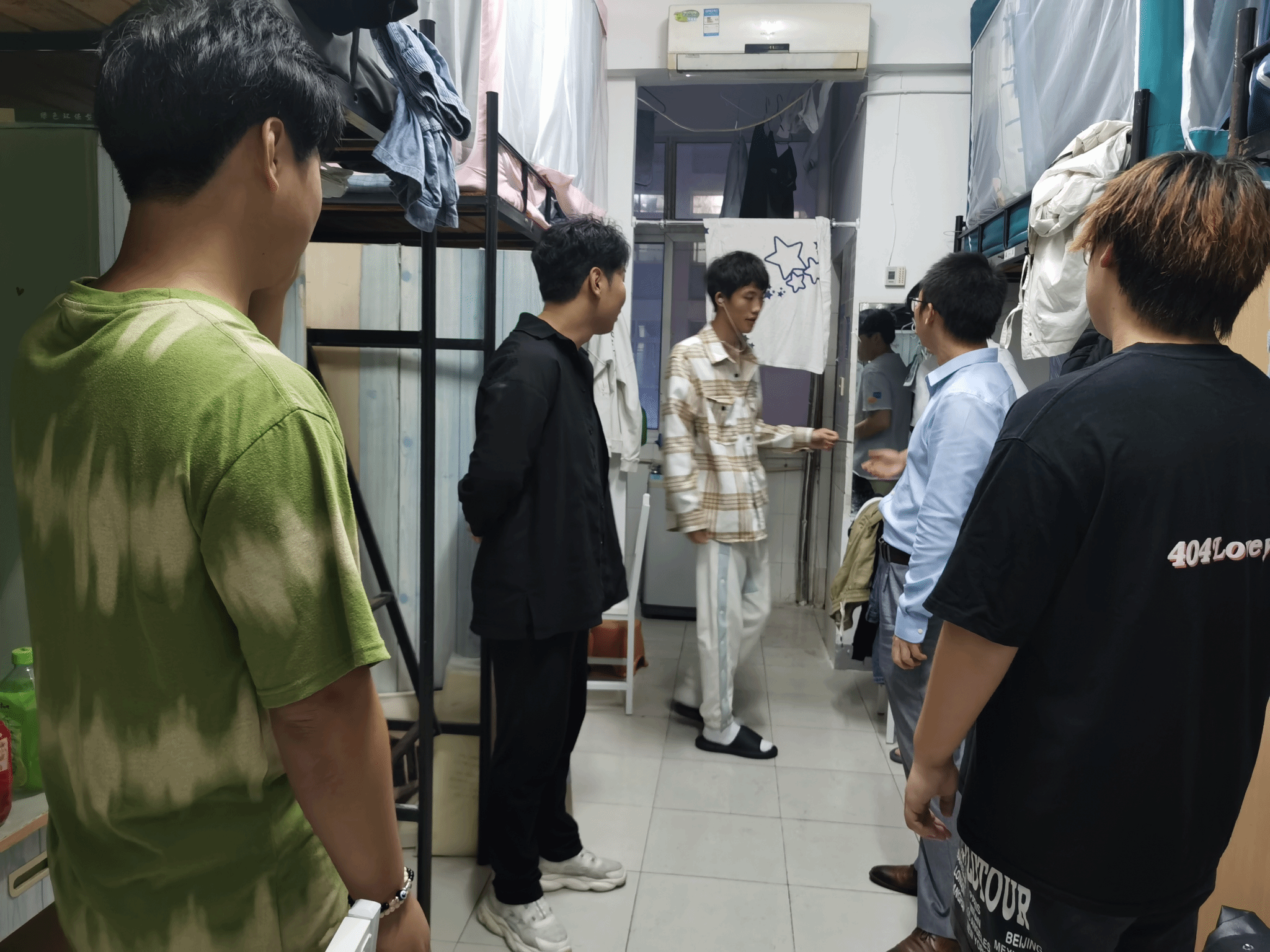 2023年10月30日晚九点,为进一步了解班级学生校园适应情况、身体健康状况,帮助同学们尽快调整心态、适应校园生活,辅导员陈军、导师班主任柯鑫、学长班主任徐睿深入环境设计1231班寝室中进行晚查寝走访。
