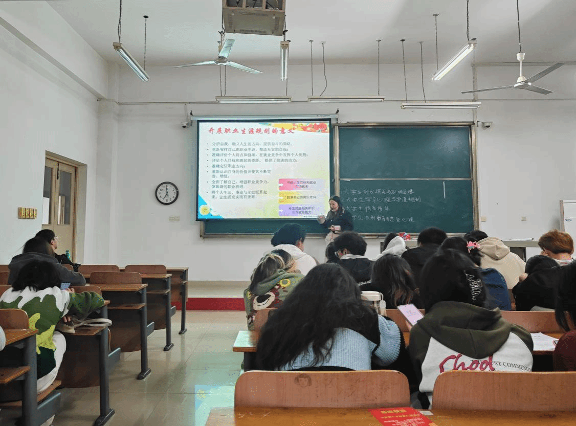 新学期已过半,2023级的同学们也已逐渐适应了大学的学习环境与生活环境。2023年11月6日晚6点半,潘周熠燃老师在视传1232-1233班开展了“筑梦青春志在四方,规划启航职引未来”的主题班会。潘老师以幽默风趣、浅显易懂的语言为视传的学生讲解了应如何规划自己的学习生涯与职业生涯,现场为同学们答疑解惑。