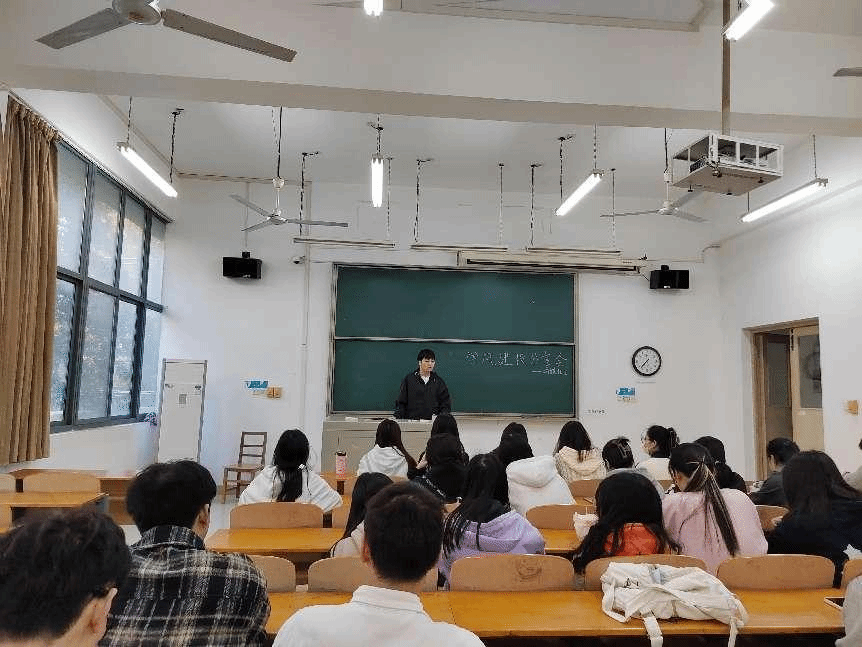 在这次班会上,班长首先谈到了关于班级的形象的问题,本月作为学风建设月,首先要树立良好的班级形象,就要做好学风建设,它的主体是学生,学生的行为举止是评价形象的重要因素。作为班级的一员,应该以维护班级形象为荣,并以违规电器的处理、早自习的出勤问题和日常上课出勤率等问题进行讲解。同时对我们提出了一些建议,在生活上,我们应该互相帮助、和睦相处。在学习上,应该积极学习、共同进步,从而营造浓厚的班级氛围,让班级的形象绽放出属于它的魅力。最后跟我们谈到了未来的规划,对我们说:“理想是前进的动力,作为大学生,面对未知的前方,我们应该静下心来,规划我们的未来,既然选择了此专业,就应该踏踏实实的学好它。”