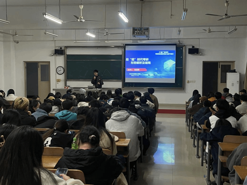 随着后“疫”时代的到来,考研形势发生了诸多变化,给即将面临考研的大学生们带来了不小的困惑和挑战。为了帮助学生们更好地应对这一新形势,11月12日,21级广告、视传全体成员于教学楼1-301开展会议,辅导员张浩琦为学生们深度解析了后“疫”时代的考研形势,并给出了一系列破局建议。