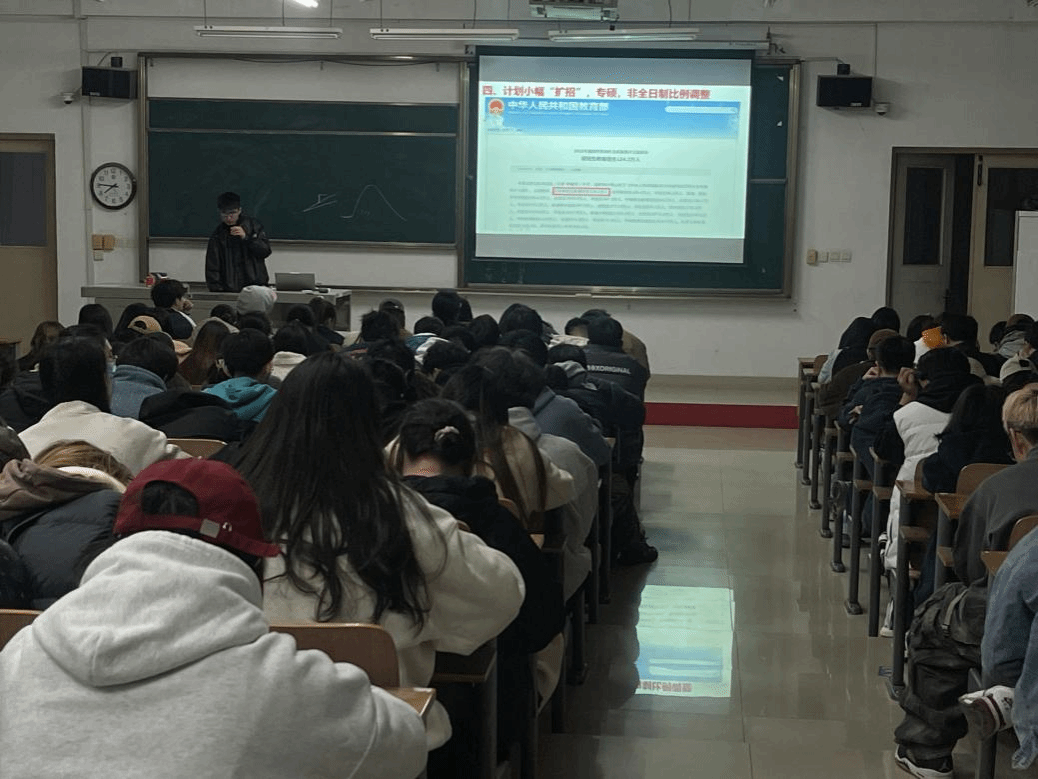 首先,辅导员张浩琦对当前的考研形势进行了全面的分析。他指出,受到疫情的影响,线上考研已成为新的趋势,而这也意味着考生需要更加注重自律和自主学习能力。同时,考研竞争愈发激烈,名额有限,要求考生具备更高的综合素质和专业知识储备。