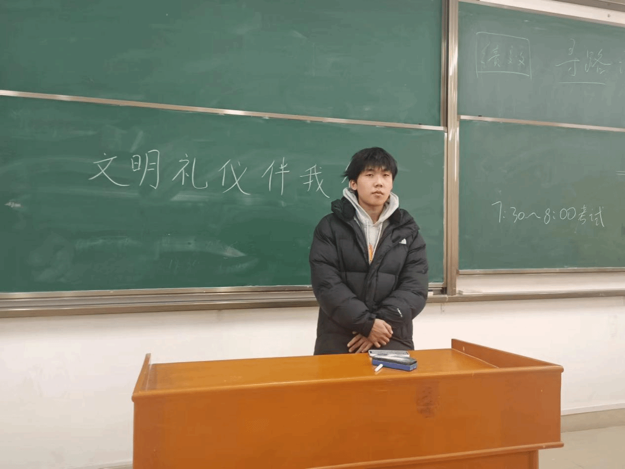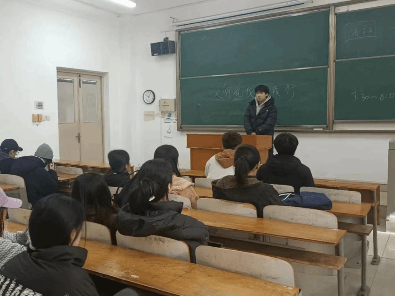作为大三的学生,视传1214班的同学们即将步入社会或者进入实习期,文明礼仪的重要性也就更加凸显。因此,2023年11月15日,视传1214班在1-505开展了“文明礼仪伴我行”主题班会。本次班由文体委员张展志主持。本次班会旨在提醒同学们始终保持良好的礼仪,培养高尚的文明意识,在未来的职场和生活中展现自己的人格魅力。