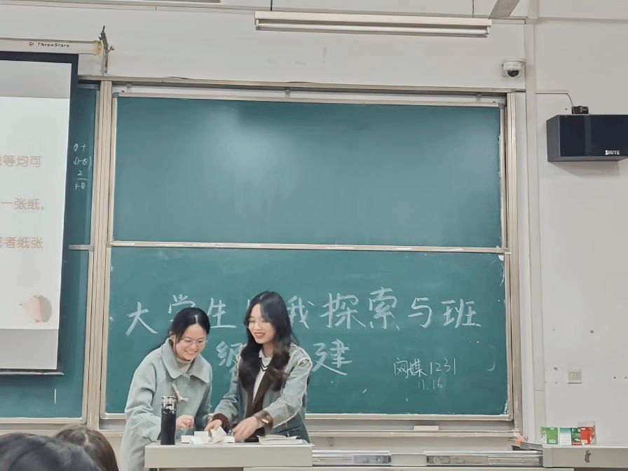 为使同学们更好进行自我认知,增加对自身了解,同时加强班级的凝聚力,11月16日晚上,网媒1231班在2-307举行了以“大学生自我探索与班级团建”为主题的心理班会。此次班会由学长班主任田之楠主持,网媒1231班全体学生参与。