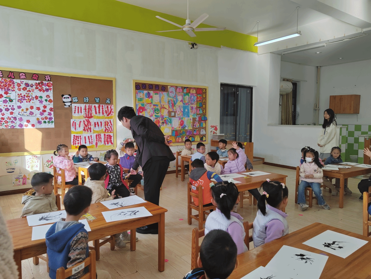 随后,陈老师一步一步耐心示范,吹墨、画梅、裁纸、粘贴,在他的指导下,孩子们开始动手制作花灯。小朋友们围坐在桌子旁,每个人手中都拿着志愿者分发的卡纸,按照老师的步骤,在志愿者的带领帮助下认真制作,不亦乐乎。志愿者们在一旁耐心地帮助他们,提醒小朋友不要把墨吸进嘴里,并且手把手教他们画梅。老师们在教室里来回走动,观察每个小朋友的制作情况,并给予指导。陈军老师还鼓励小朋友们发挥自己的想象力,让花灯变得更加有趣和独特。一个个精美的花灯在孩子们的手中诞生。孩子们高兴地举起来展示给老师们和志愿者看。志愿者和老师都为他们鼓掌,并称赞他们的作品非常漂亮。一张张稚嫩的小脸上都洋溢着自豪和满足的笑容。孩子们不仅近距离感受到了非遗花灯的魅力,他们的动手能力和创造力也得到了锻炼和提升。