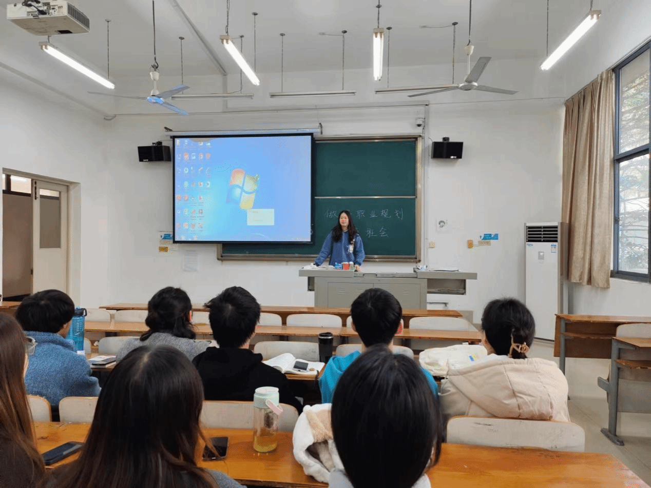 首先,龚紫怡给大家分析了当前的就业形势,让同学们对职场有了更加清晰的认识。接着,她讲述了几个案例,通过不同的就业情况和去向,为大家展示了多种就业渠道,还分享了自己的职业规划心得,引起了大家的强烈共鸣。随后,班会进入自由讨论环节。大家纷纷发言,畅谈自己的职业目标和计划,她耐心倾听每位学生的发言,针对不同的情况,给出了中肯的建议和指导,鼓励同学们多多尝试,走出自己的舒适区。她指出:“已经步入大三学年,无论是考研、考公还是就业,大家都要思考清楚自己的未来发展,同时,针对自己的目标提早做好准备。”