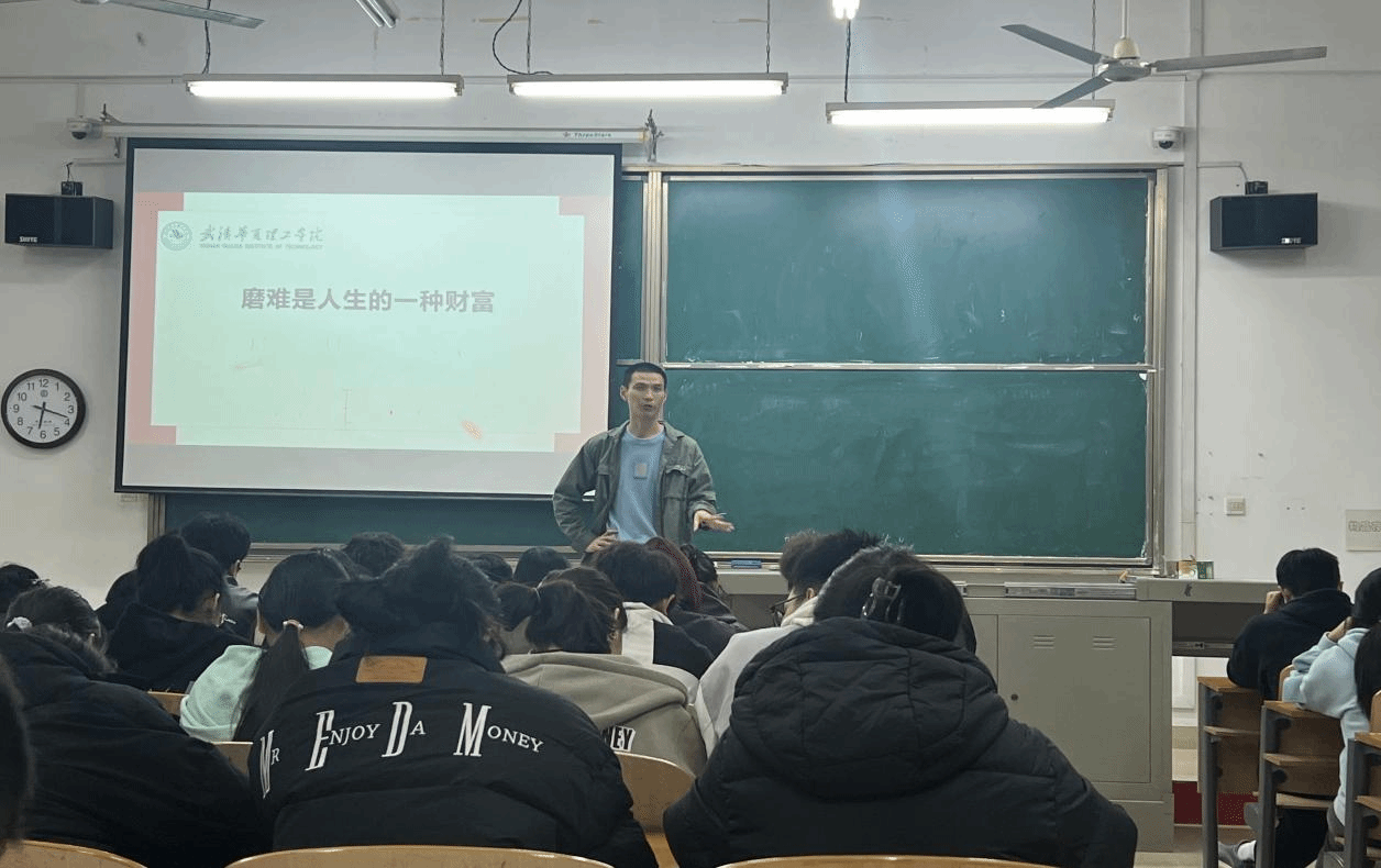 为了塑造大学生坚强而健康的人格,增强自信心,2023年11月19日晚上6点30分,葛占洪老师组织21级环境、数媒、产品全体学生在教学楼2-307开展了以“磨难是人生的一种财富”为主题的晚点评教育会议。