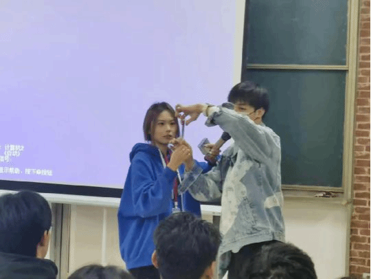 接下来,前任会长罗昱珩向大家科普了艾滋病的相关知识,包括它的名称,感染的方式,患艾滋病后的几个阶段等等,为了让大家直观感受艾滋的传播速度和规模,同学们在会长李露杰的指挥下进行了热身小游戏“野火游戏”。规则解说之后,同学们就行动起来了,进行了几轮的“交友”之后,最终“艾滋病患者”由最初的两人达到十几人之多。这个游戏让在座的同学们感受到了艾滋病传播的规模之大,速度之快。在平时的恋爱交友中更应该抱着谨慎认真的态度,一定要以自身健康为重。