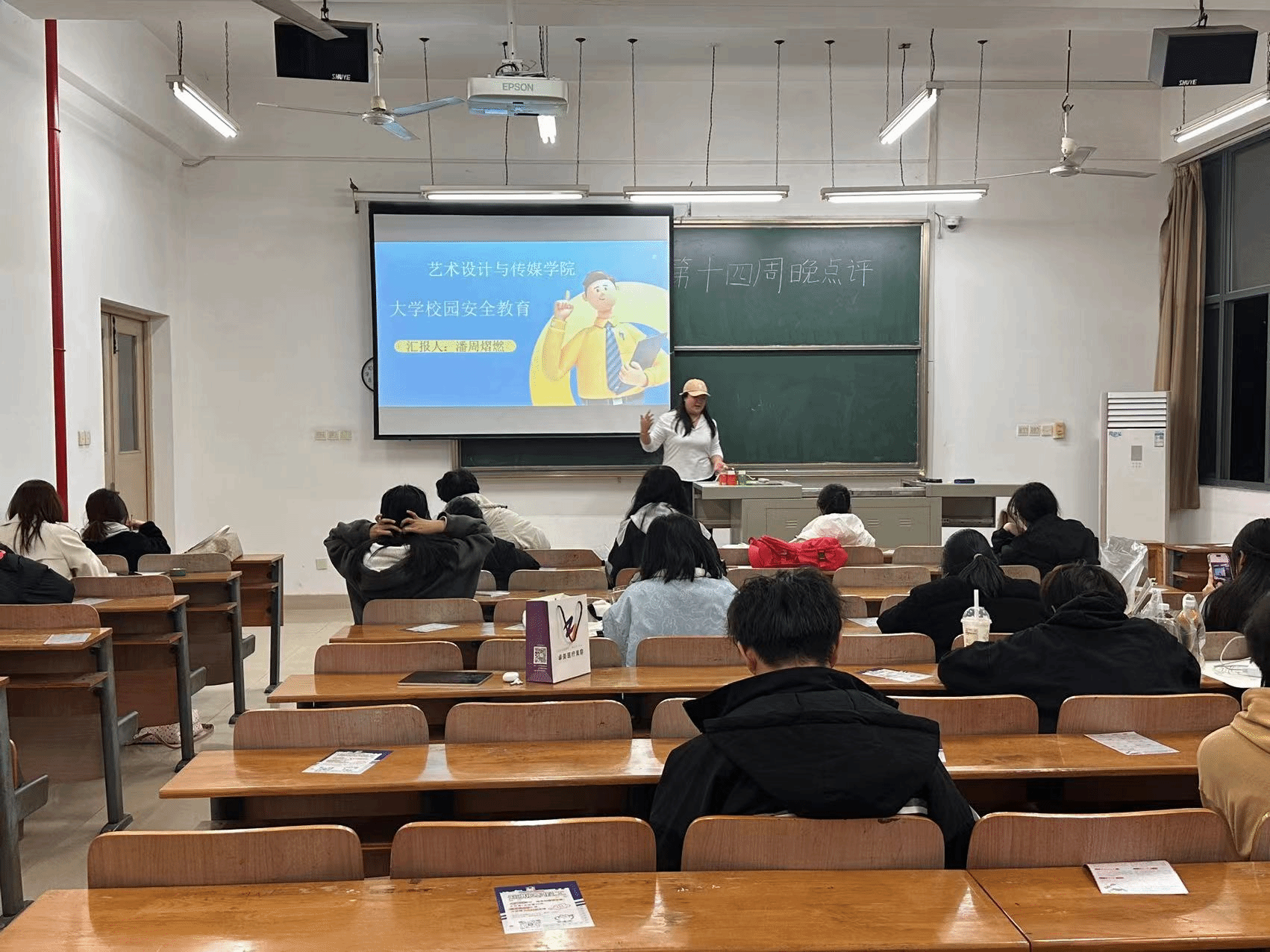 12月6日晚6点,产设1231班在辅导员潘周熠燃老师的带领下开展了一场以大学校园安全主题班会,本次会议旨在提高同学们的安全意识,确保大家在校园中的平安与和谐。
