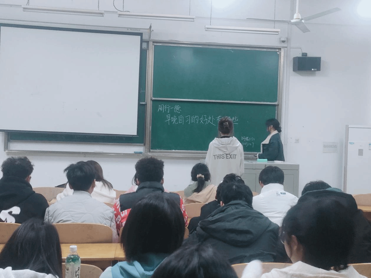 为了提高同学们的学习效率,培养良好的学习习惯,提升自我管理能力,同时激励同学们振奋精神、锐意进取,以良好的精神风貌投入到以后的学习中。网媒1232班于2023年12月7日晚在教学楼2-307教室召开了周行一德:早晚自习的好处主题班会,本次班会由班长杨璐主持,网媒1232班全体同学参会。