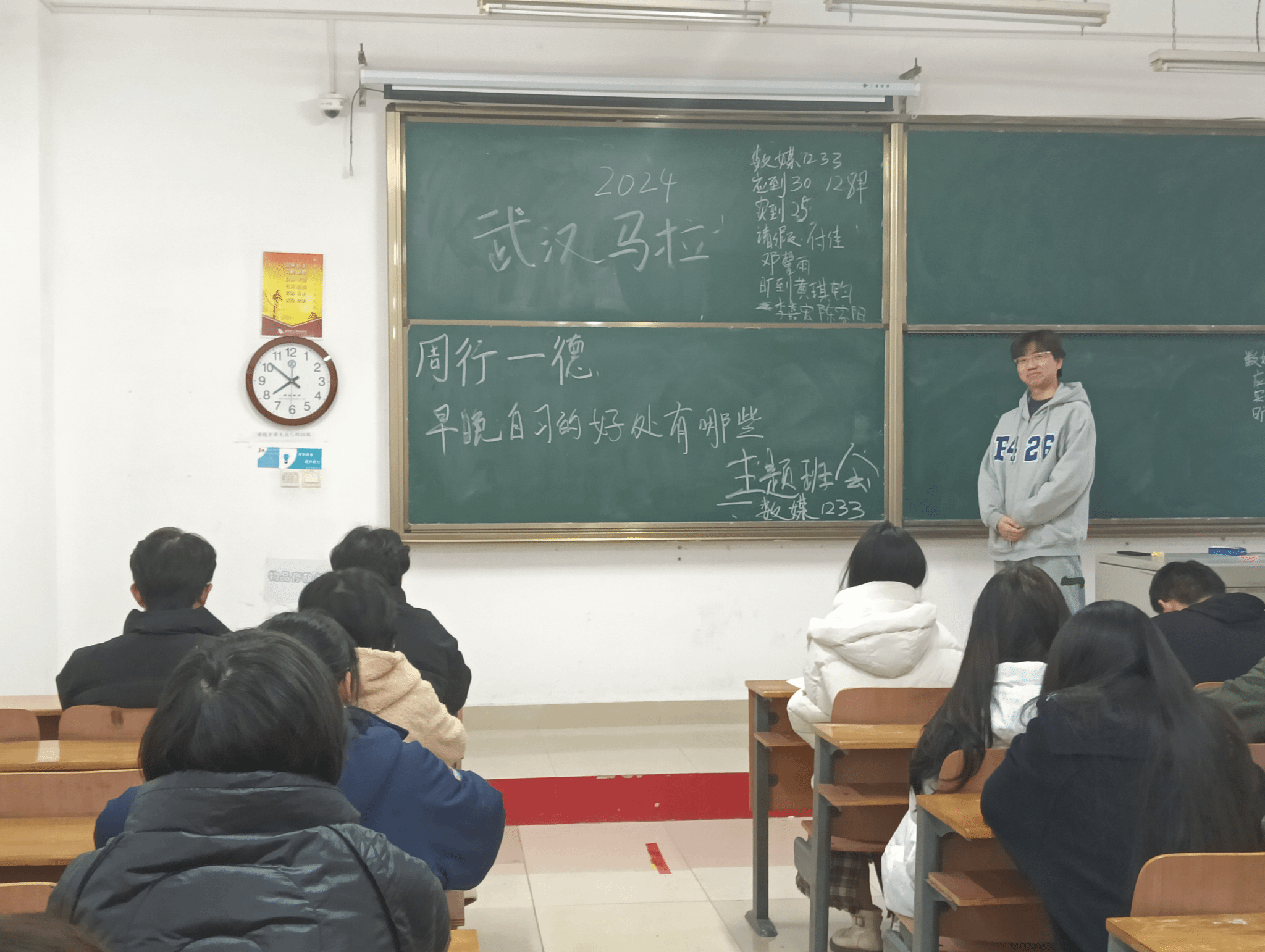 近年来,越来越多的同学开始意识到早晚自习的重要性。早晚自习是我们学习生活的一部分,它对我们个人的学业发展和全面发展都有着极为重要的影响。2023年12月8日,数媒1233班于1-207开展了主题班会。班会由班长杨艺主持,数媒1233班全体同学参会。