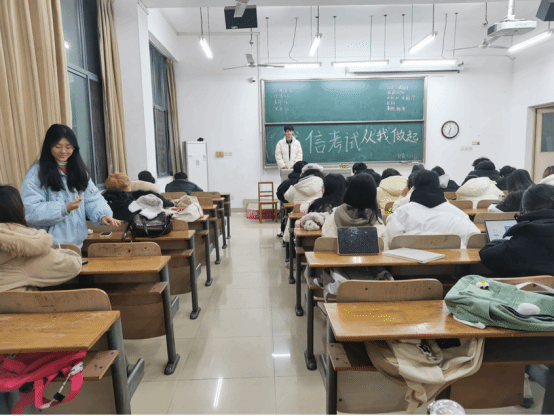 上周六我校举行了四六级考试,周日的周行一德诚信考试从我做起。旨在培养学生的诚信意识,提高学生的诚信素质,为社会输送更多的优秀人才。