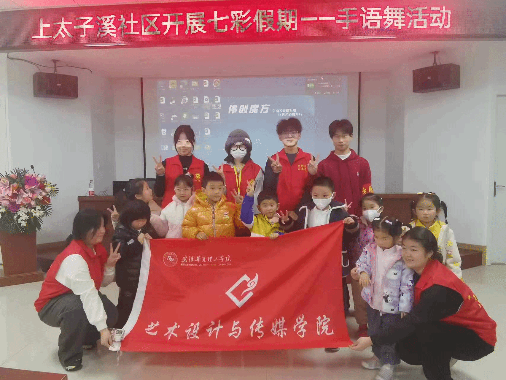1月13日上午10点,由上太子溪社区、我校艺术设计与传媒学院青年志愿者协会承办的红色手语舞活动在上太子溪社区二楼成功举办。本次活动旨在带领孩子们了解了新中国成立的不易,让孩子们的爱国之情越发浓郁,激励孩子们努力学习,报效祖国。