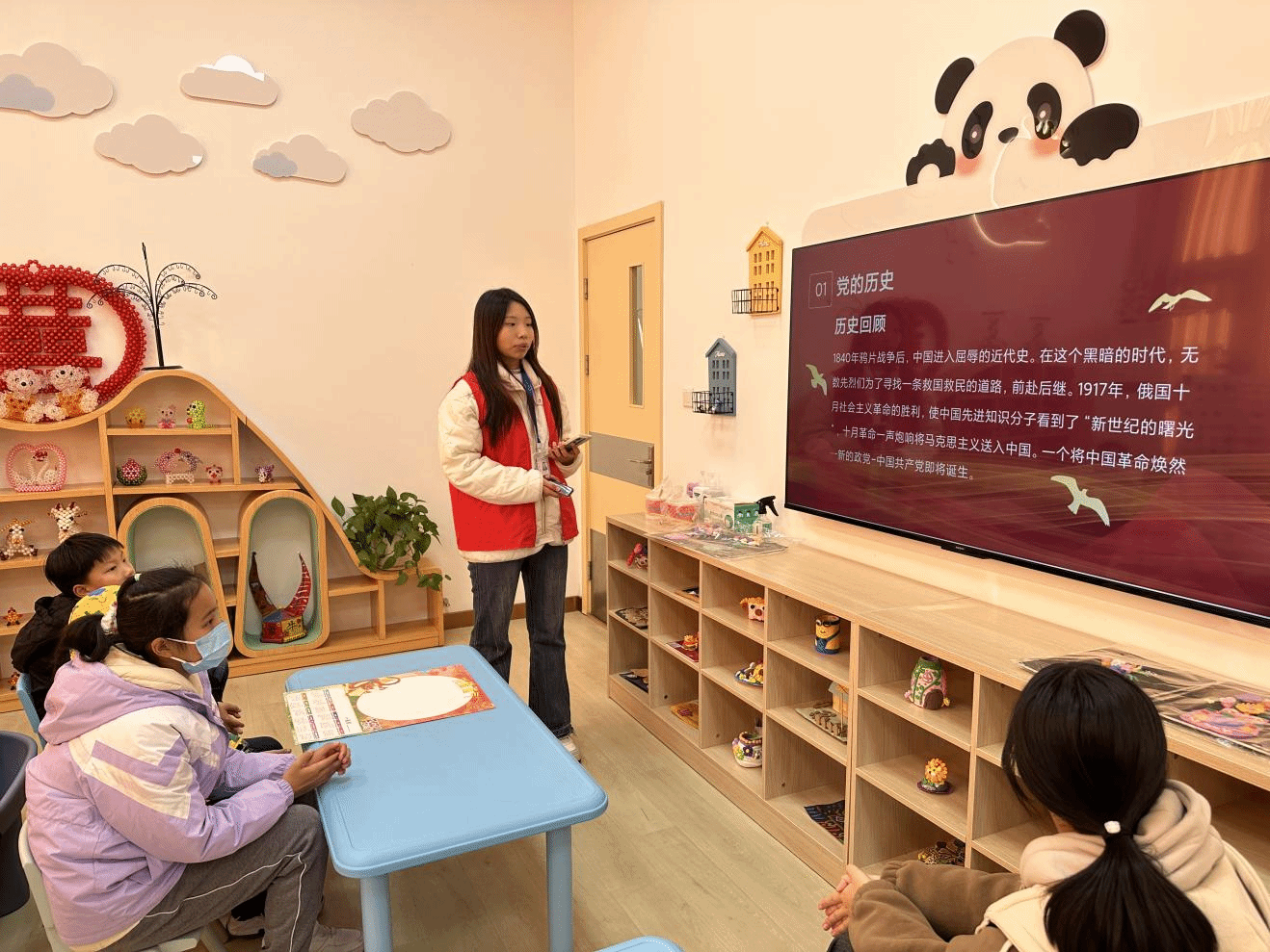 在本次党史活动中,小朋友们了解到了党的一些历史知识以及革命者们的故事。在小朋友和志愿者们的交互中,志愿者们也从中了解了党史的重要性,对于身为大学生的他们来说,对自身全面发展有着重要的影响,提升了他们的知识水平的同时,也培养了他们的社会责任感、团队协作精神等重要的品质和能力。