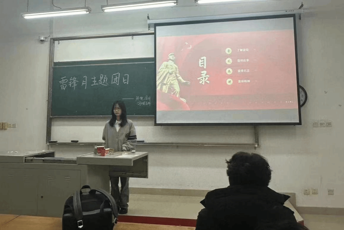 班会伊始,由班级团支书朱子璇首先从了解雷锋的生平入手,详细介绍了这位平凡而伟大的士兵——雷锋。他的故事虽然简单,但却充满了深刻的人生哲理和崇高的精神追求。通过讲述雷锋的日常生活和无私奉献的行为,让在场的每一位学生都感受到了雷锋精神的力量。