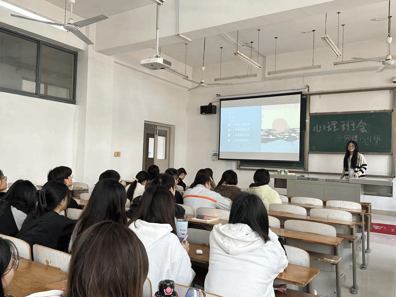 接下来,申曼同学通过心态影响、常见心理问题、心理调节方法和如何树立阳光心态争做活力大学生四个方面宣传普及了心理健康知识。引导同学们正确掌握应对不良情绪和心理压力的方法,进一步提高自身的适应能力、积极形成一个健康的积极向上的人格。
