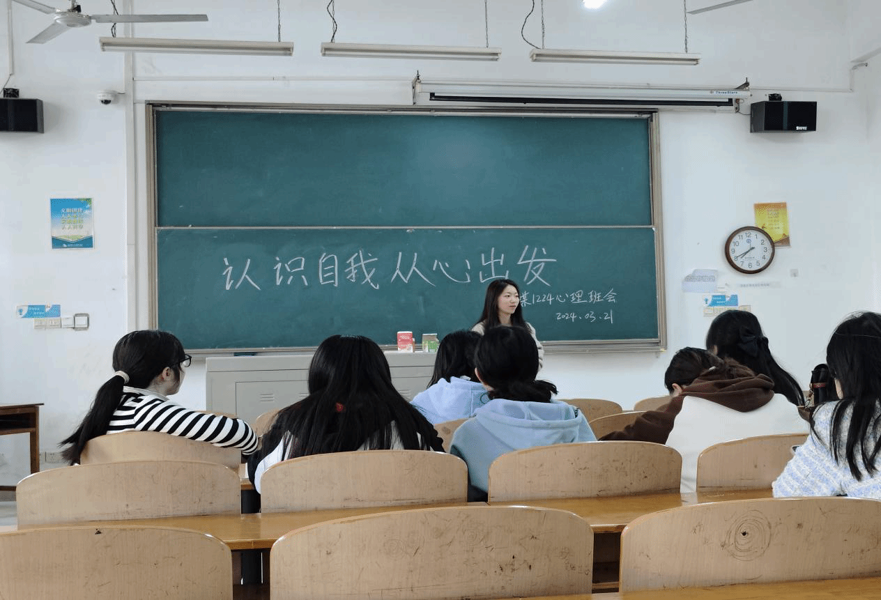 2024年3月21日,网媒1224班开展了本学期第一次心理主题班会。此次班会在教学楼2-205开展,谭浩楠同学作为心理委员在班会上分享了自己的工作经验和心路历程,为班级同学提供了宝贵的心理支持和建议。