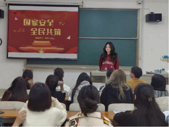 2024年是习近平总书记提出总体国家安全观10周年,是第九个全民国家安全教育日。为深入学习宣传贯彻党的二十大精神,贯彻落实《关于组织开展2024年全民国家安全教育日宣传教育活动的通知》要求,切实增强同学们的忧患意识,引导班级同学深入领会总体国家安全观,增强当代大学生对于国家安全的根本守护意识和危机防范能力,牢固树立“国家安全、人人有责”的思想观念,共同筑牢安全防线。4月12日下午,网络与新媒体1217班在二教302组织开展了以“国家安全,全民共筑”为主题的班会。