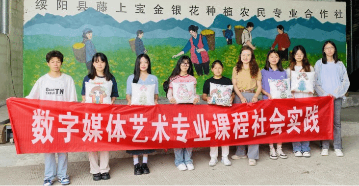 设计能为发展注入新活力。在本次数字媒体艺术专业课程社会实践中,绥阳县小关乡的金银花文创产品设计一直是该团队的主要工作方向之一。得益于小关乡自身文化底蕴深厚、产品特色鲜明等优点,本次设计工作稳步进行,最终形成了成熟且极具创意的设计方案。对此,小关乡徐继艳书记及当地相关领导给予了高度评价并表达了进一步合作意向。后续,该次设计成果将用于当地乡镇文化旅游推广和产业振兴,为当地乡村振兴事业注入新的活力。