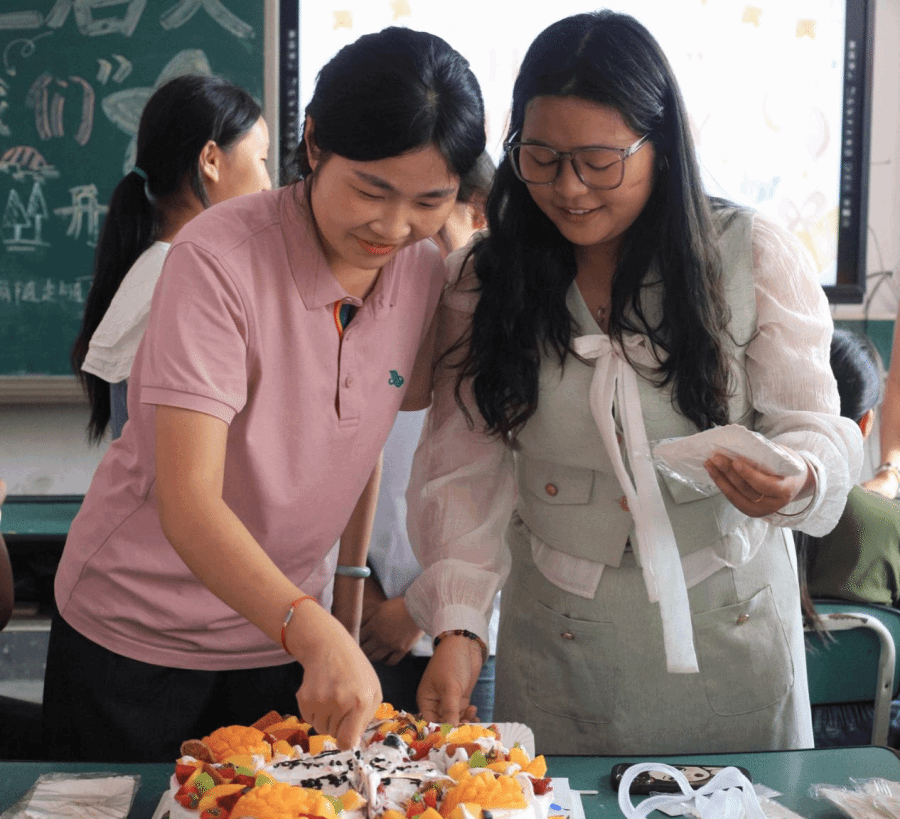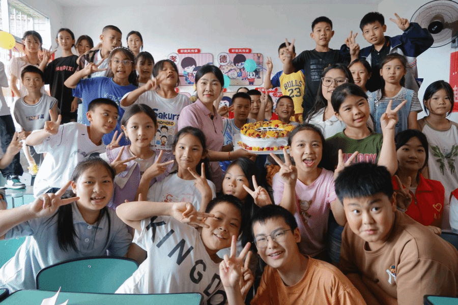 活动首先由实践队指导老师杨洋老师、惠铃老师分别在向阳班、逐梦班进行开场致辞,对到场的嘉宾和师生表示热烈欢迎。随后,活动进入高潮部分,实践队全体成员为夏令营学员送上温馨的生日祝福。在点蜡烛、许愿、切蛋糕环节,老师、领导及学生代表共同参与,共同见证了这一美好时刻。随后,大家纷纷分享美味的蛋糕,一块块蛋糕承载着希望小朋友们健健康康的成长的期许,师生及家长们共同享受着这份难得的甜蜜与幸福,现场充斥着温馨、快乐、感人的气氛。