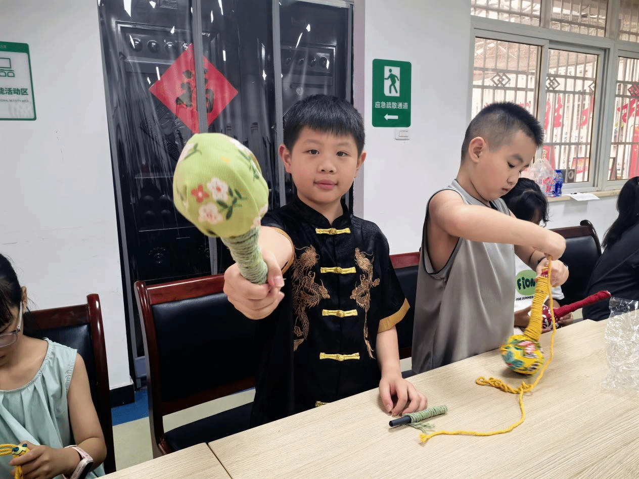 在制作过程中,孩子们展现出了惊人的创造力和动手能力。他们挑选自己喜欢的颜色和图案,认真地剪裁布料、填充艾草、编制养生锤。虽然过程中遇到了一些小困难,但在志愿者和家长的鼓励和帮助下,孩子们都顺利完成了自己的作品。活动最后,每个孩子都自豪地展示了自己亲手制作的艾灸养生锤。这些色彩斑斓、造型各异的养生锤,不仅承载着孩子们的创意和努力,也寓意着健康和快乐。
