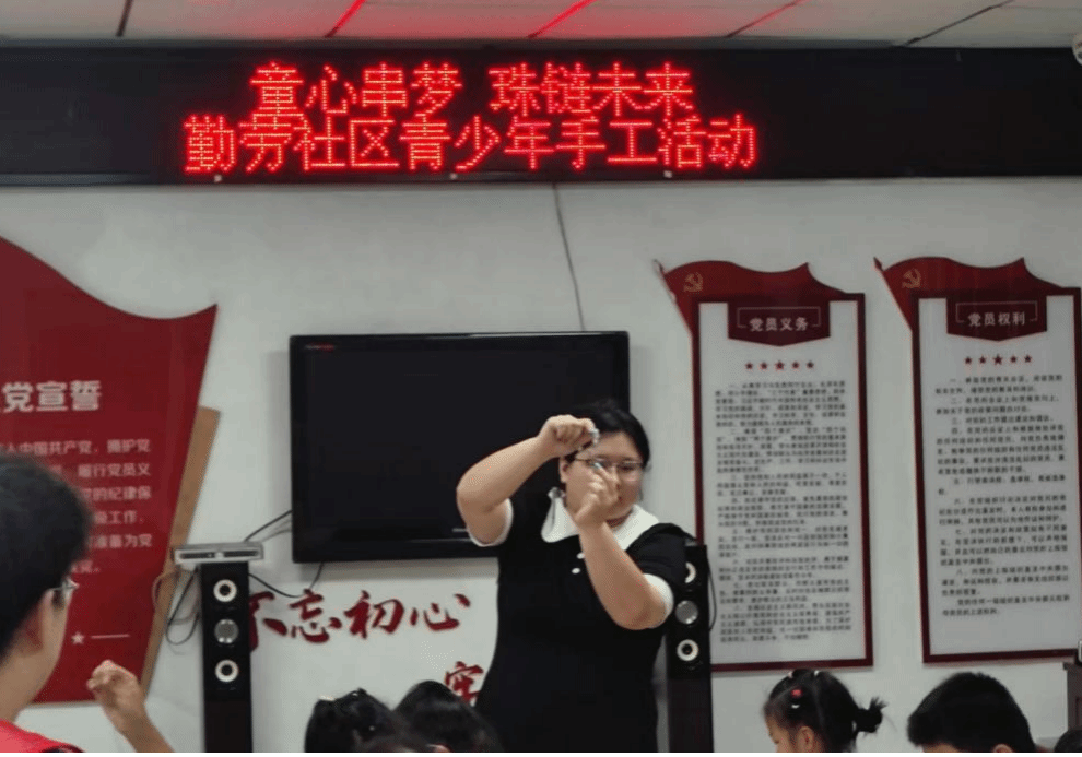 8月13日,华夏非遗实践队联合勤劳社区共同举办童心串梦、珠链未来串珠手工艺活动,旨在通过传统串珠技艺的传授,激发社区小朋友们的创造力与想象力,让传统文化在孩子们心中生根发芽。