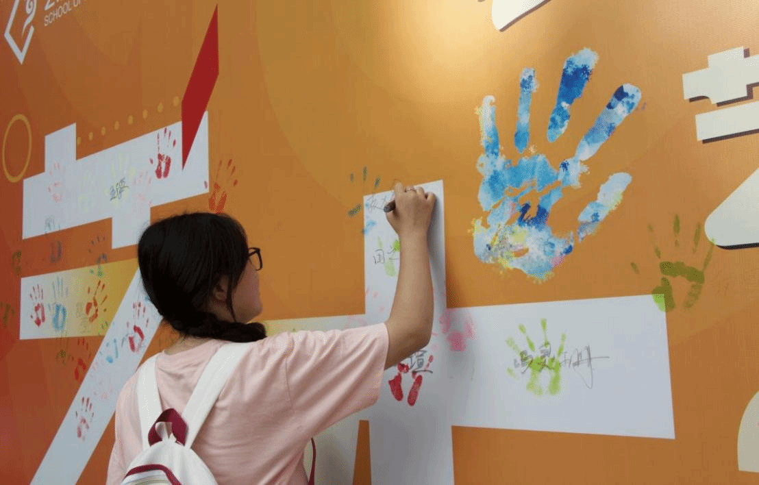 这次活动不仅增强了同学们的凝聚力与创造力,还进一步帮助新生融入了校园。数媒1234班的屈同学表示,自己抱着极大的热忱参与了本次活动,并且在志愿者的指导下,通过互动式的艺术创作,打破了传统迎新活动的界限,赋予了同学们的校园生活更多的色彩和活力。“我愿意多参加这些意义十足的活动,既帮助了他人,也提升了自己。”屈同学望着墙壁上色彩斑斓的手印,每一笔每一划都凝聚了同学们的热情和创意,象征着他们对新学期的期待与祝福。