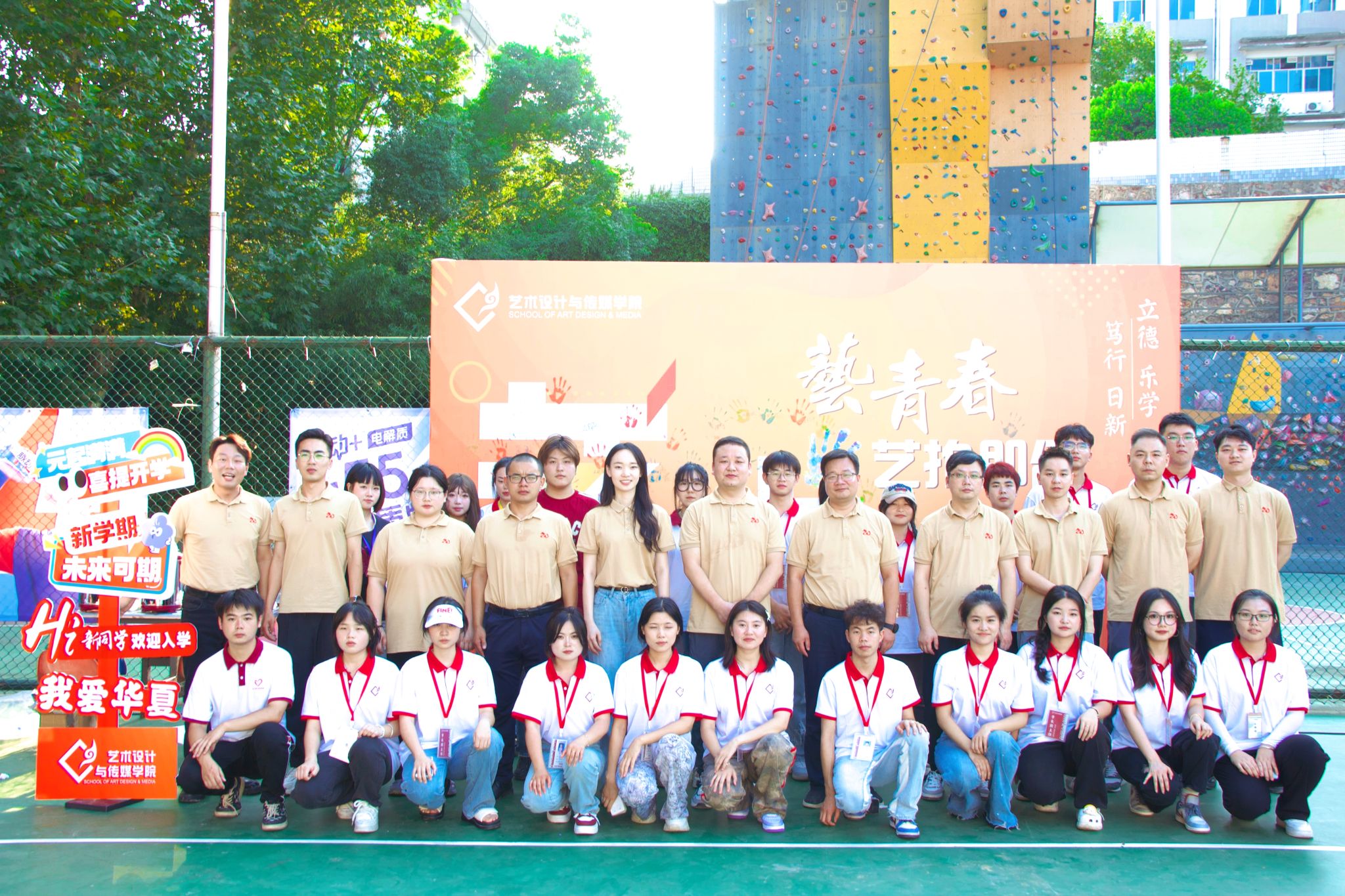 为了迎接大一新生的到来,我院于近日举办了一场别开生面的迎新活动——“艺”青春·“艺”拍即合。9月7日至9月8日,活动在学校篮球场举行,吸引了众多新老生参与。在志愿者的指引下,同学们手上沾满了各色颜料,热情高涨地将色彩绚丽的印记拍打在巨幅墙壁上,创造出一幅幅富有创意与青春气息的艺术作品。