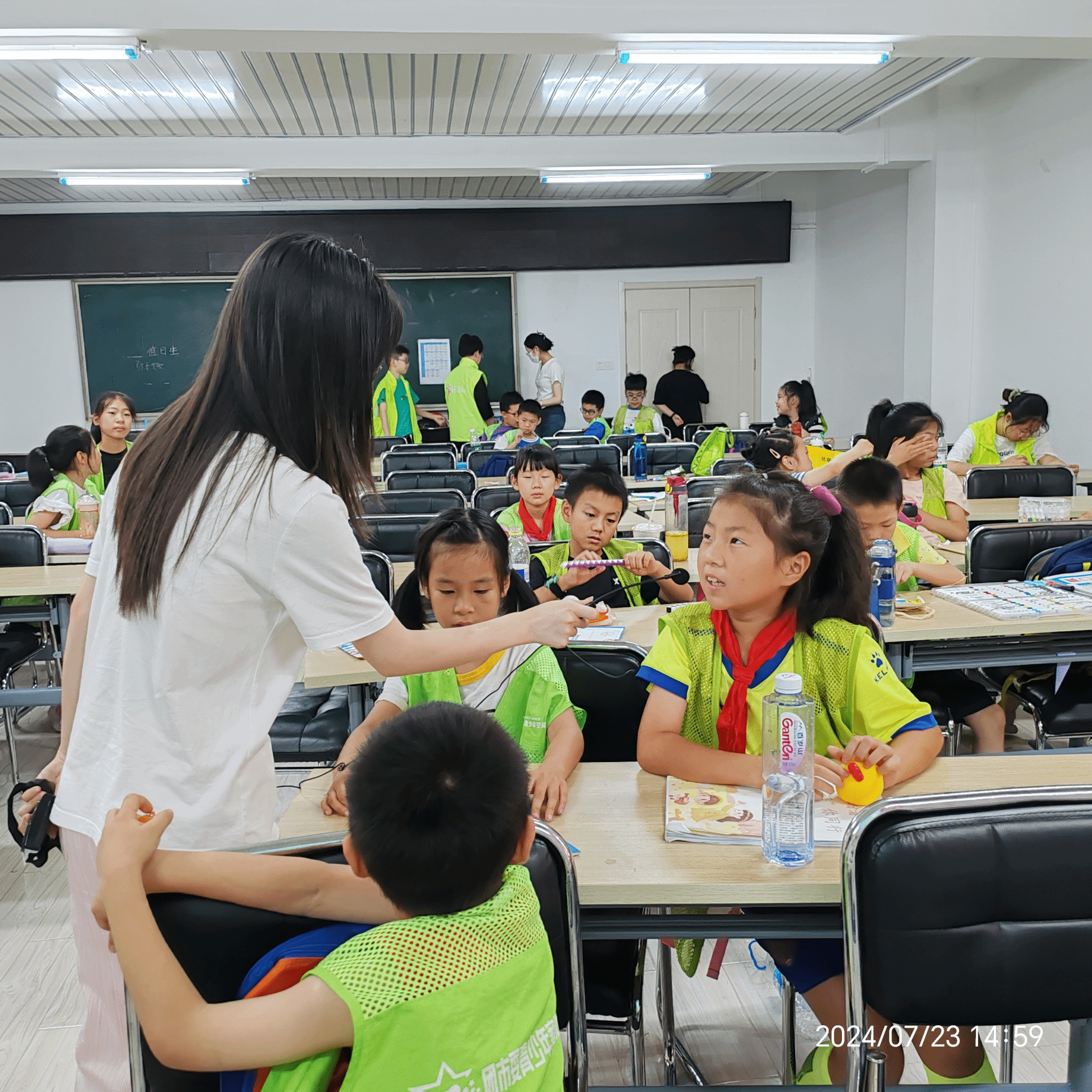 在课程中,我们小讲师为孩子们提供了一对一的书写指导,教授孩子们如何握笔、运笔,如何掌握书法的基本笔画和结构,让孩子们在书写中体会汉字的魅力;通过生动的示范和讲解,引导孩子们理解诗词的情感和内涵,让他们在朗诵中传达出诗词的韵味和情感。