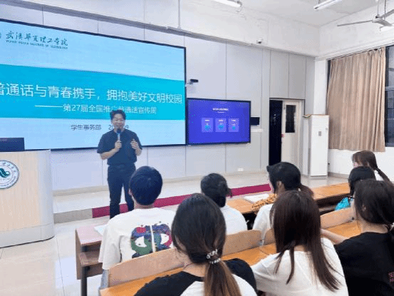 2024年9月22日,为了规范使用国家通用语言文字,弘扬中华优秀传统文化,我院23级辅导员陈军老师在2-101教室开展了一次网媒、数媒、环设“普通话与青春携手,拥抱美好文明校园”主题班会活动。