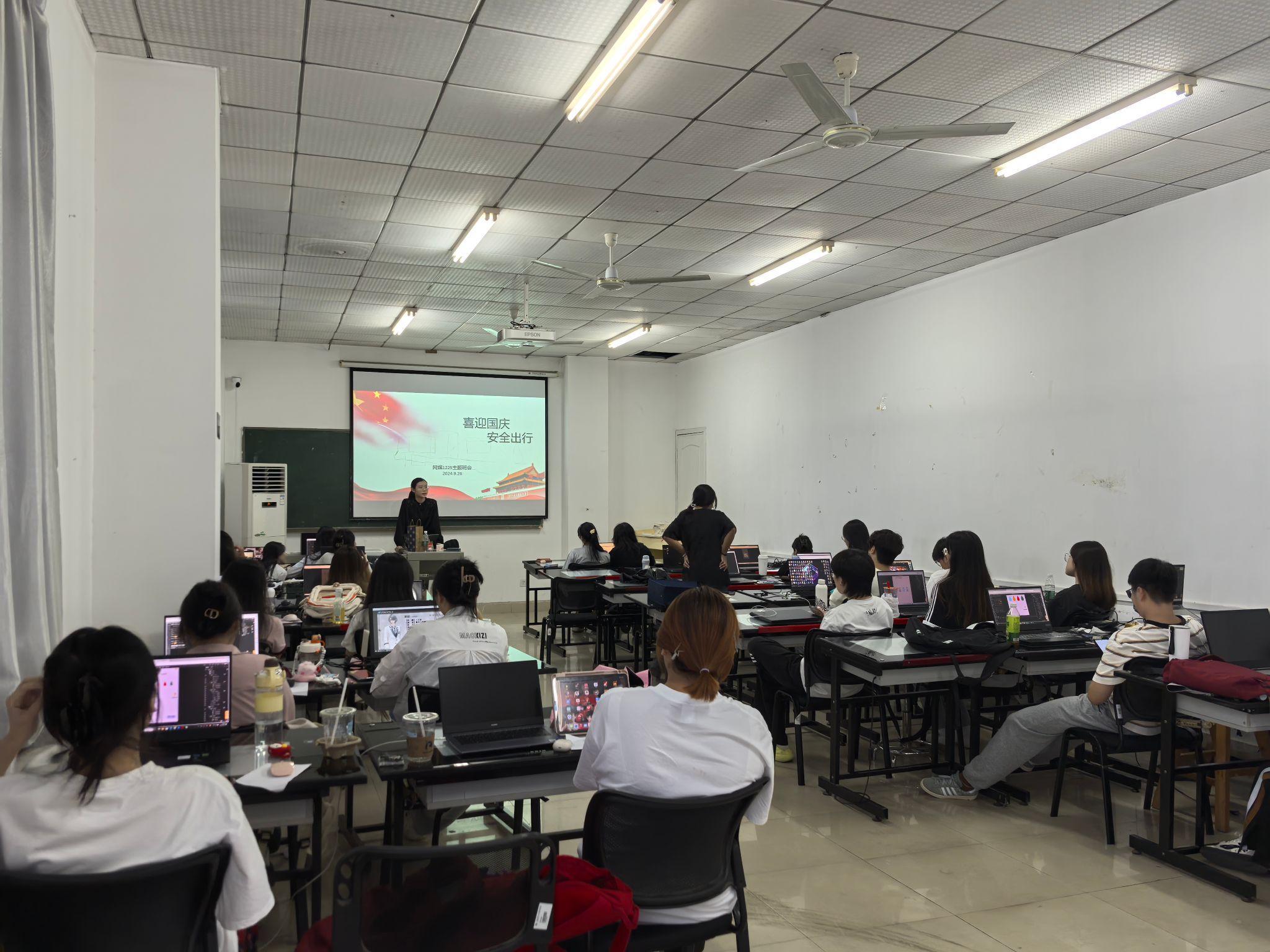 2024年9月26日下午,网媒1225班于八号楼艺术楼834-1召开了“喜迎国庆,安全出行”主题班会,针对国庆期假期期间的出行安排和放假时间安排,以及出行可能遇见的安全问题,进行了讨论和提醒。