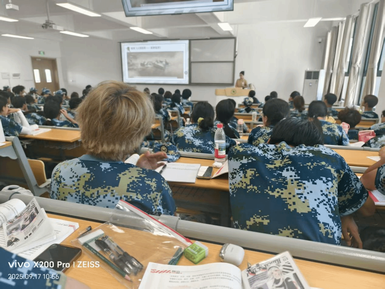 九月的我校,骄阳似火,却挡不住五营十连新生们的军训热情。9月17日,一场别开生面的军训理论课在教学楼内开展,为新生们的军训生活注入了深刻的思想内涵。