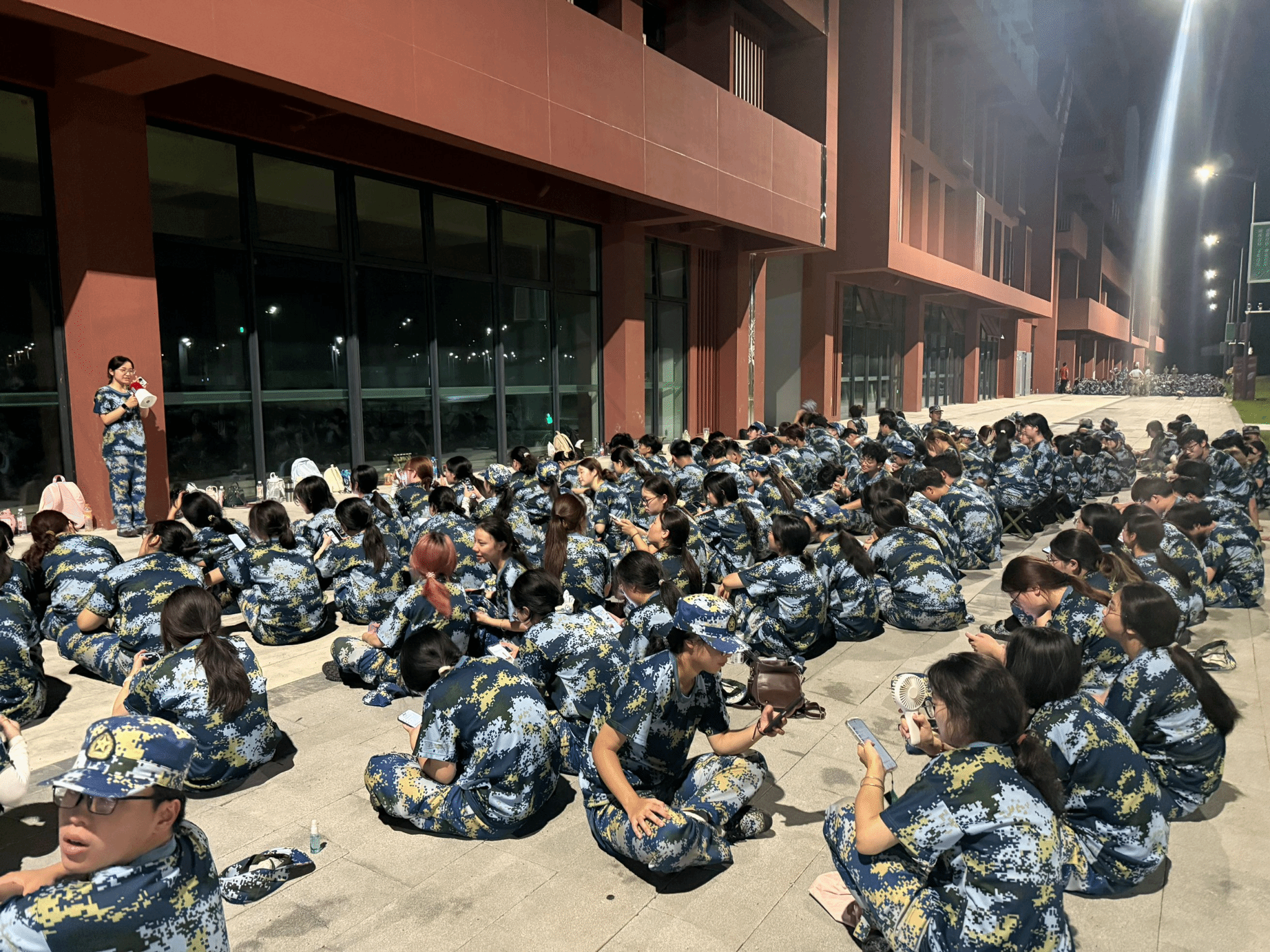 夜幕降临,我校新生军训场却热度不减。9月下旬的夜晚,在校园的露天广场上,身着迷彩服的新生们齐聚一堂,一场别开生面的军训夜间活动正精彩上演。