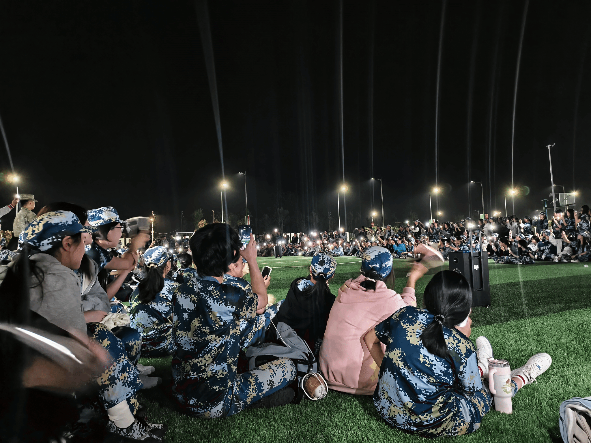 晚上训练时间,为缓解疲惫、凝聚士气,教官们主动组织起节目表演。有的连队新生唱起军歌,嘹亮歌声回荡操场;有的同学展示吉他弹唱,轻快旋律让氛围瞬间轻松;还有连队组队表演小品,幽默情节引得全场欢笑。教官们也加入其中,示范标准军礼、分享军训趣事,训练场上的紧张感被欢声笑语取代,不仅拉近了师生距离,更让新生们以更饱满的状态投入到后续训练中,为攻克步伐转换难关注入新动力。