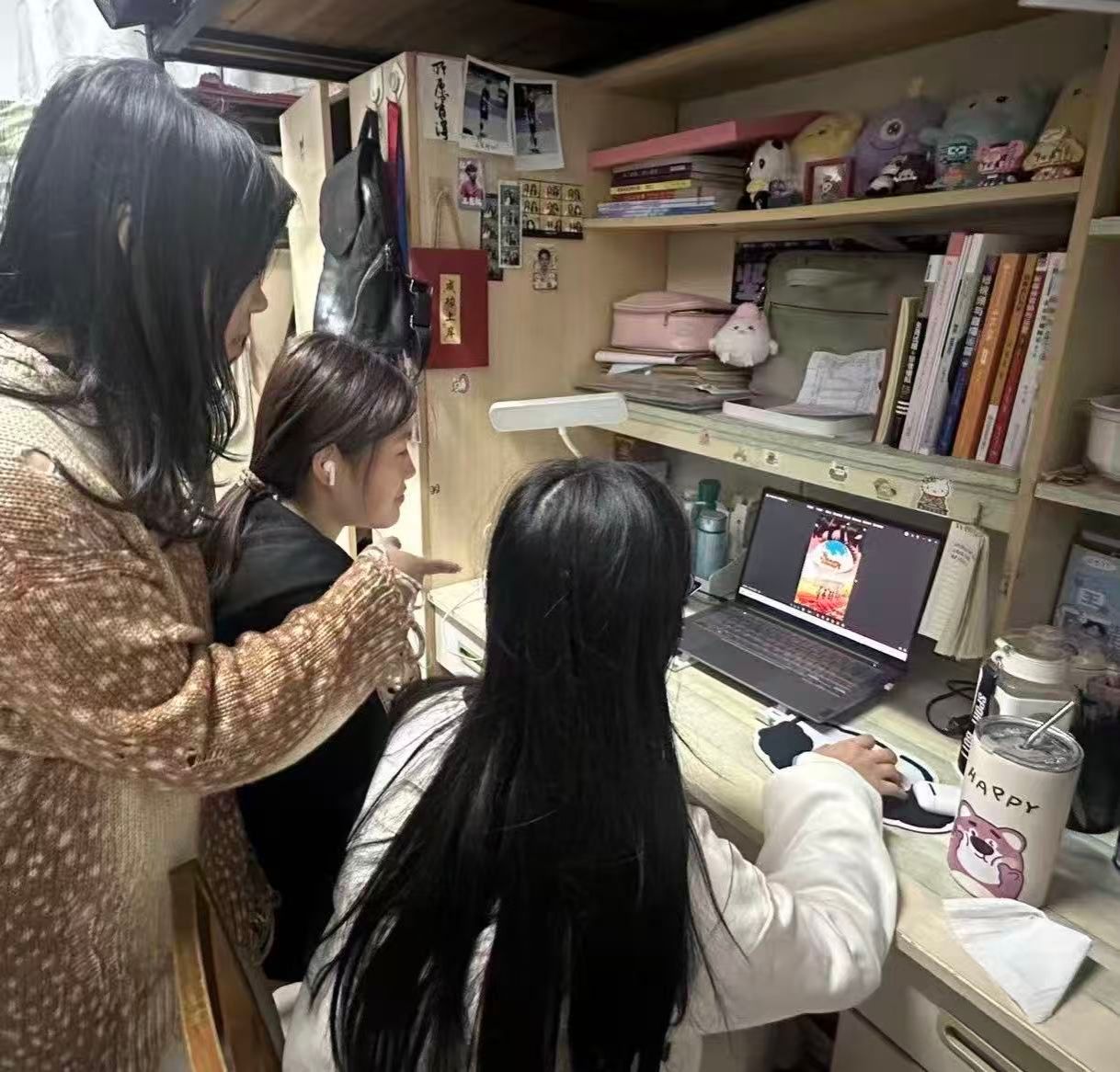 活动过程中,于老师逐一走访各寝室,细致观察同学们的学习环境与日常状态,重点了解宿舍学风建设情况、在线课程学习进度、课后任务完成质量,以及同学们在专业学习中遇到的实际困难。她结合广告学专业的实践性与创新性特点,为同学们的期末复习提供了针对性建议,并鼓励以寝室为单位组建“学习共生小组”,通过定期讨论、资源共享、互督互助的形式,形成持续向上的学习共同体。