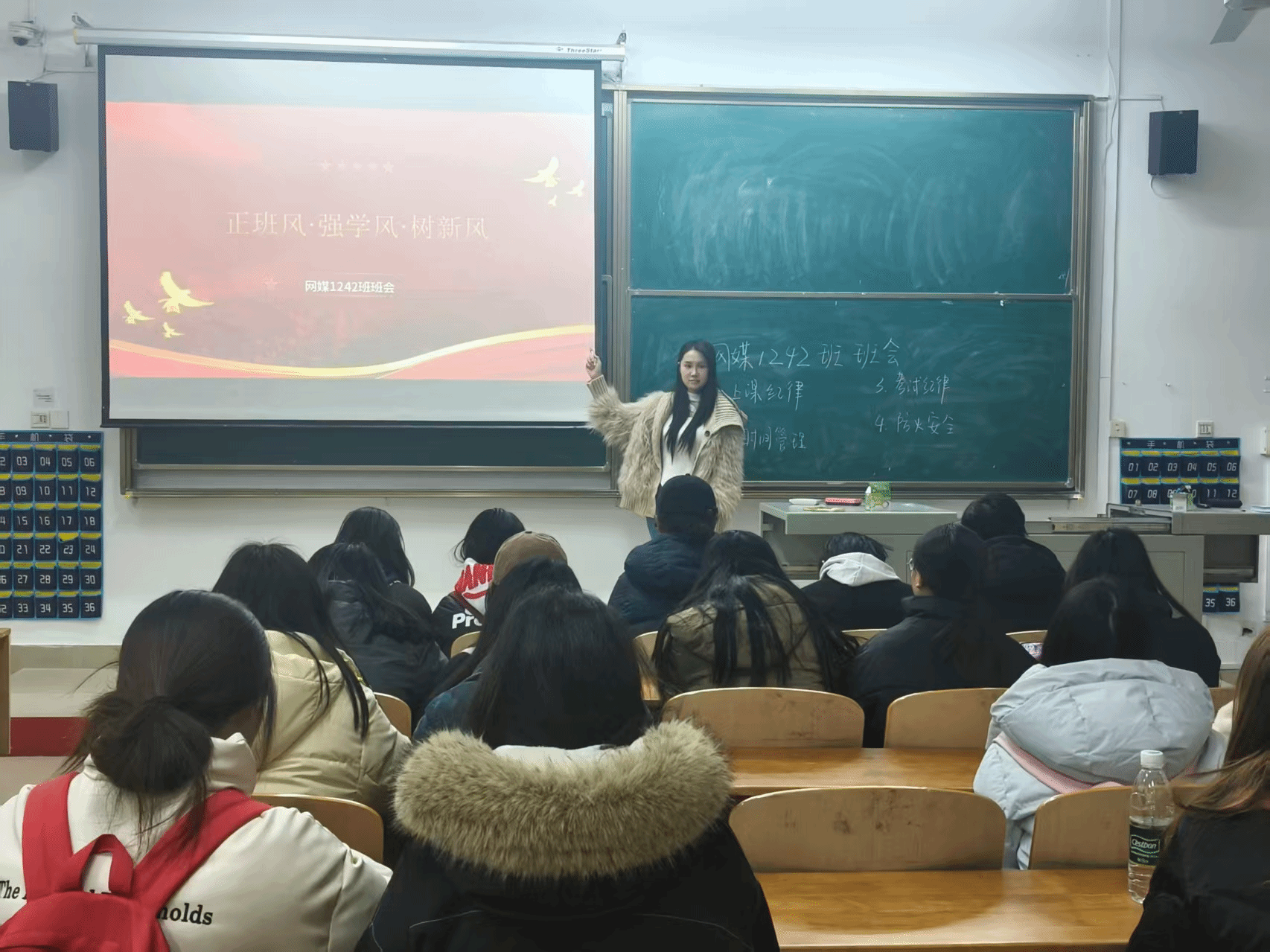 为进一步加强班级日常管理,强化学生的纪律意识与安全观念,营造积极向上的学习氛围,12月2日上午,网络与新媒体专业1242班召开“正班风、强学风、树新风”主题班会。本次会议由导师班主任杨佳婧主持,全班同学参加。