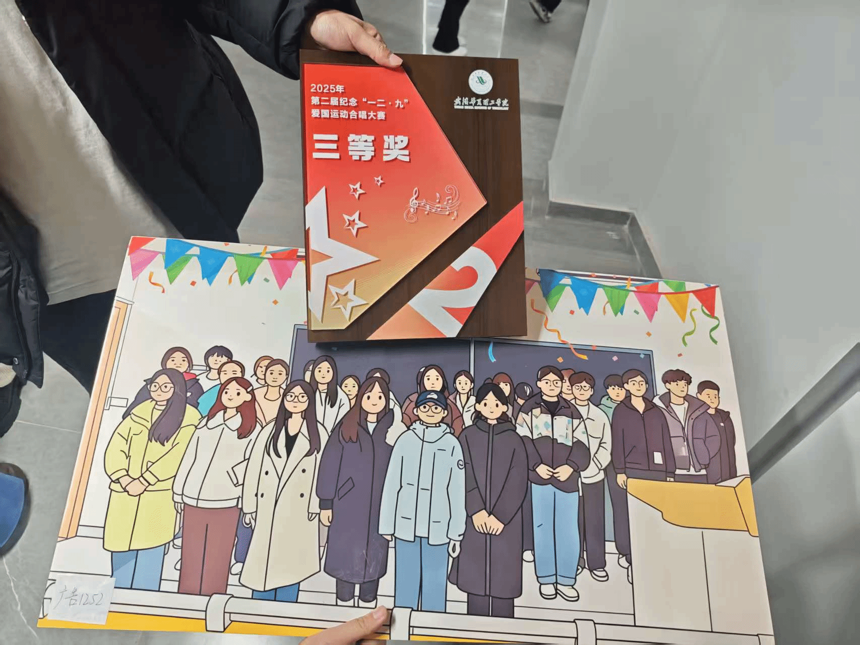 近日,武汉华夏理工学院第二届纪念“一二·九”爱国运动合唱比赛圆满落幕。广告1252班同学凭借饱满的热情、整齐的和声与默契的配合,一路过关斩将,最终荣获比赛三等奖,用歌声书写青春风采,为班级赢得荣誉。