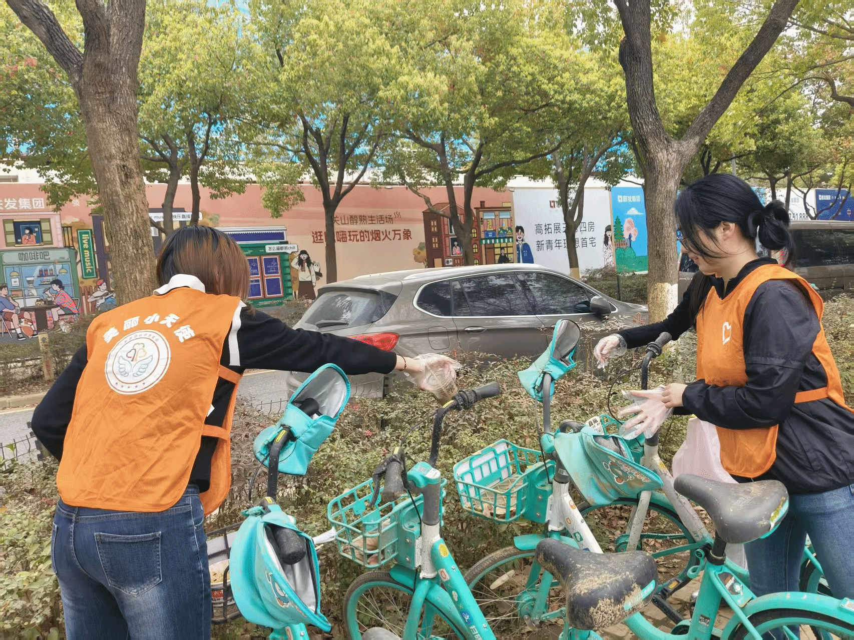 活动现场,志愿者们分工协作,对人行道、盲道上随意堆放的共享单车逐一清理。大家合力将歪斜倒地的车辆扶起,把占用盲道、阻碍通行的单车有序摆放至指定停车区域,同时擦拭车身上的污渍,还对墙面上的小广告进行了清理。尽管午后阳光渐暖,志愿者们的额头渗出细密汗珠,但大家依旧干劲十足,用实际行动守护着城市的“文明温度”。