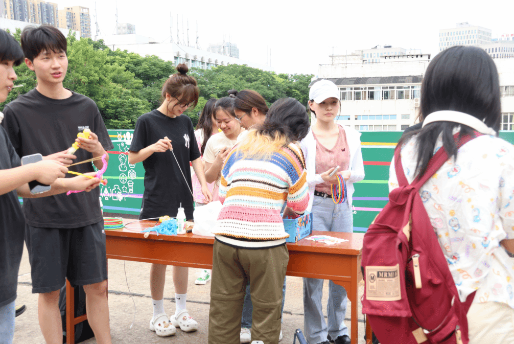 充满童年回忆的跳格子、套圈圈、滚铁环、吹泡泡等小游戏……5月31日,一场以一块钱“网”返童年为主题的公益儿童节超时空时光机活动在武汉华夏理工学院涂鸦墙展开。此活动由该校艺术设计与传媒学院网络与新媒体1211班的同学组织开展。玲琅满目的小礼品,丰富多彩的游戏环节引来了大批学校师生来此驻足。