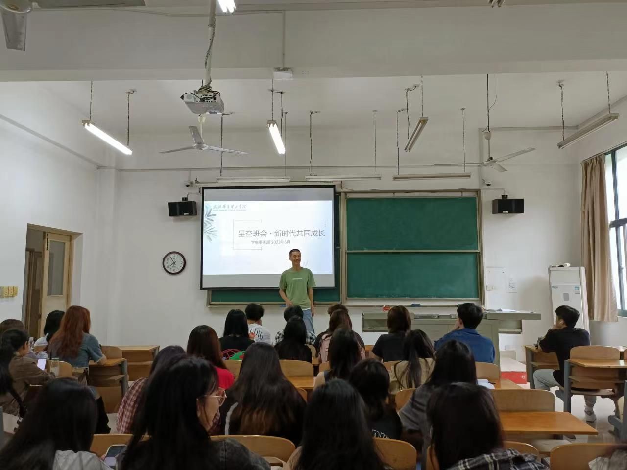 2023年6月4日晚上7点,我院21级辅导员葛占洪老师在教学楼2-307开展了星空班会•新时代共同成长主题班会。本次的班会主要围绕着以下两个方面进行展开,一是如何在新的环境中快速适应,二是如何进行自我心理调整。