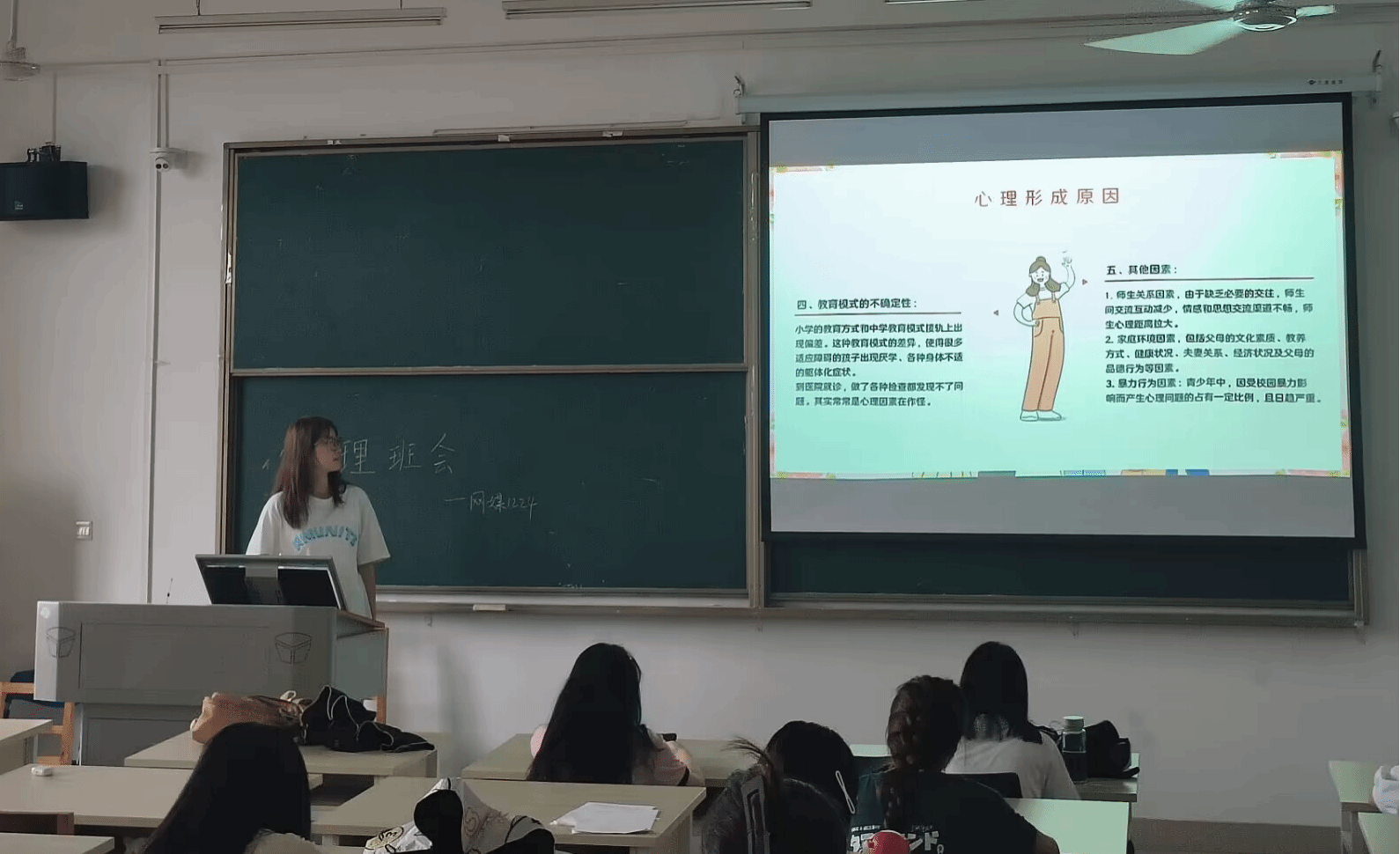 本次活动由组织委员董可主持开展,以ppt的形式讲解具体内容,阐述解决心理问题的方法,绝非“你说我听式”的单方向,而是以高参与度和高积极度为基础的充分交流,其用心设计的活动环节可效提高参与度和积极度,同学们认真听取组织委员的讲解,在自由发言阶段积极响应,踊跃提问,营造了一种互助互信,团结友爱的氛围,增强了班级凝聚力和向心力。