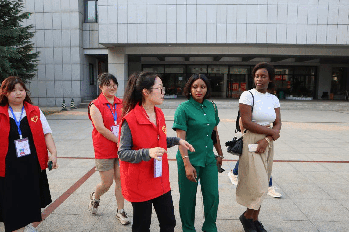 随后由志愿者带领这五位外国友人参观校园景观,在陈军老师的讲解下,外国友人了解了我们的校园文化,打卡校园景观,合影留念。我们的志愿者英专姜晨曦同学也热情的为外国友人介绍我们的学校,并分享了志愿者过程中的幸福与苦涩,得到大家的积极回应,虽然有时候很累,但帮助他人会有满满的成就感,场面其乐融融。