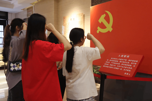 在参观过程中,同学们还自发为同样前来参观的游客们进行讲解,引导大家进一步加深对革命遗址的了解,在实践过程中不仅锻炼了自己,也积极承担青年人的责任,让更多的人了解红色文化,让红色基因传播得更远。在参观八七会议旧址中,同学们在会址中的一面党旗前庄严宣誓,坚定跟党走的决心,展现出红色传承的青春本色。