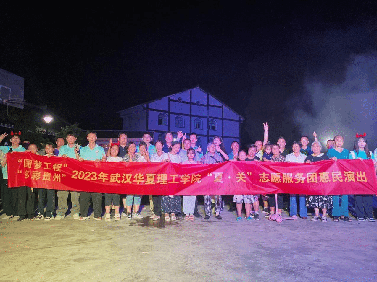 7月28日晚,武汉华夏理工学院“夏·关”志愿服务团受邀参演“避暑银花香,农旅乡村美”2023年小关乡和美乡村农旅文体系列活动暨篝火晚会。