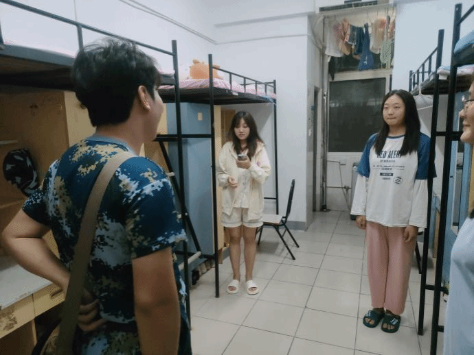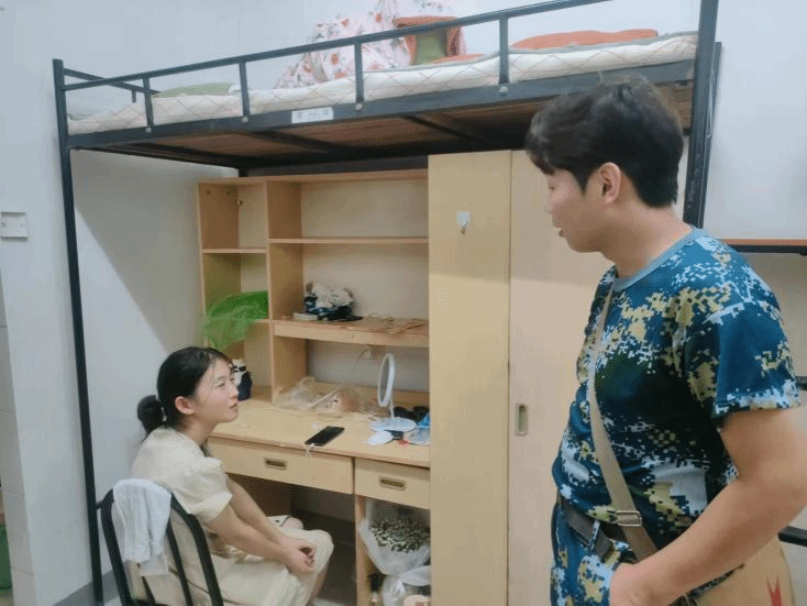 此次走访学生寝室有三个中心任务:一是检查同学们按时回寝情况。辅导员对所带班级寝室进行检查,对不在寝室学生的去向及个人信息进行询问;二是对寝室内务的监督与检查,对有安全隐患的寝室重点提醒和指导。最后在了解了基本情况后,陈军老师特别关注了同学们军训期间的早餐问题。提醒同学们按时吃早饭,拥有健康的体魄才是做好训练的前提。