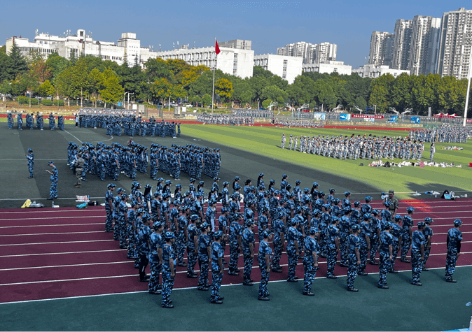 今日天朗气清,惠风和畅。而操场上那绿海点缀下的斑斑迷彩是青春中最绚丽的颜色;烈日直射下的飒飒背影是青春中最挺拔的身姿;号令映衬下的阵阵口号声是青春中最美妙的旋律。