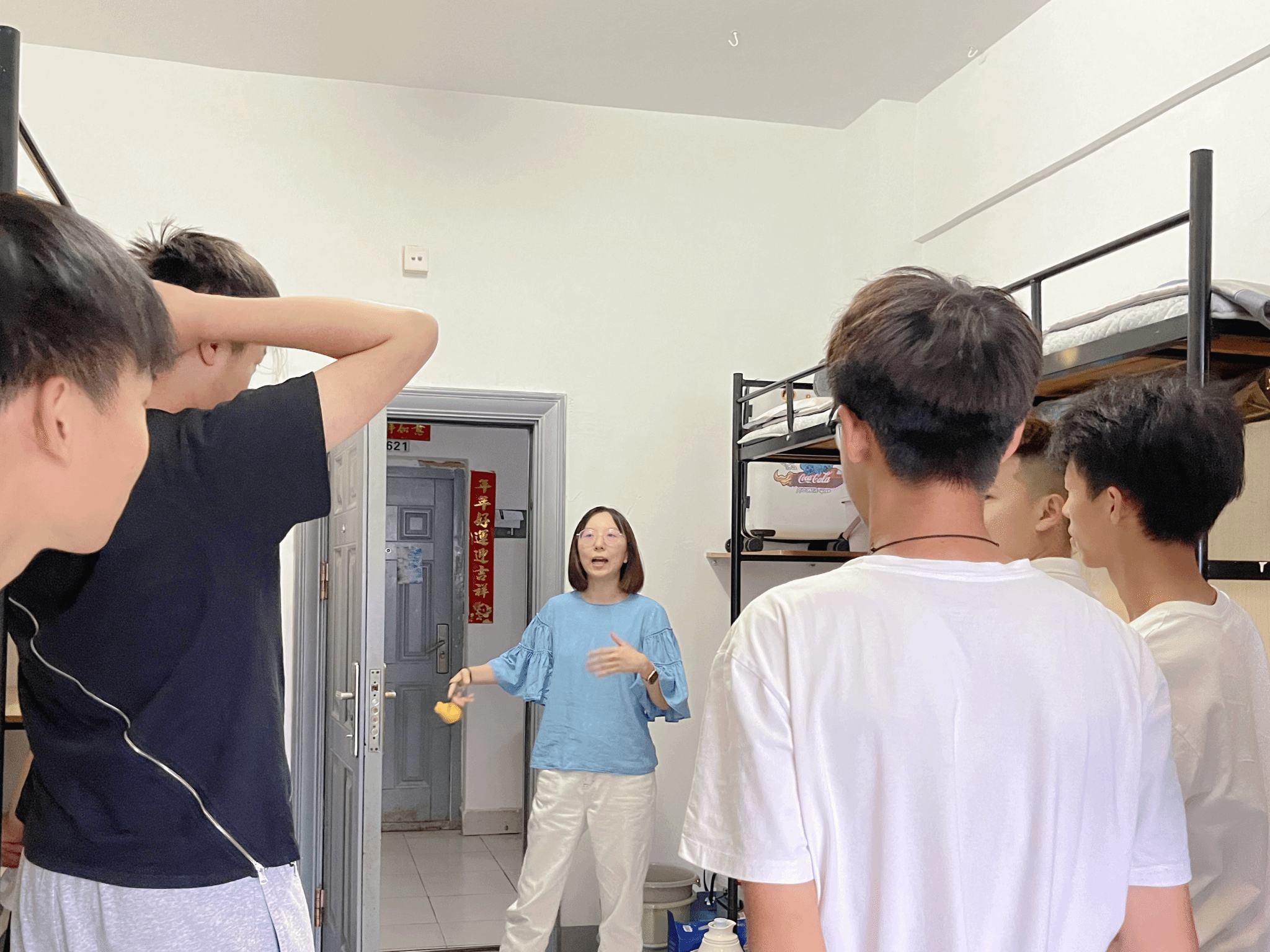为确保工作的有序开展,学长班主任张兵提前通知大家,集合了全部同学做好充分准备工作,并与班级导师一起问候欢迎大一新生,导师班主任与班级迅速建立了联系,也很快认识了班级的学生干部们,以便于后面班级管理工作的开展。