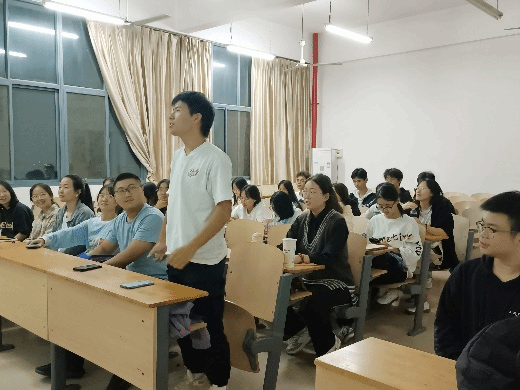 会上,导师班主任唐依主要围绕大学认知、大学规划、防诈防贷与Q&A问答四个环节展开。在问答环节,针对同学们提出的共性问题,她也给大家分享了她考研时学英语的心路历程,告诫大家求学路途的艰辛,同时希望大家在大学期间能够有所收获。“如果命运是世上最烂的编剧,那么你就要争取做你人生最好的导演。”通过唐依老师的分享,同学们对自己的大学生活有了初步的规划与安排,并对“大学”有了更深刻的理解。