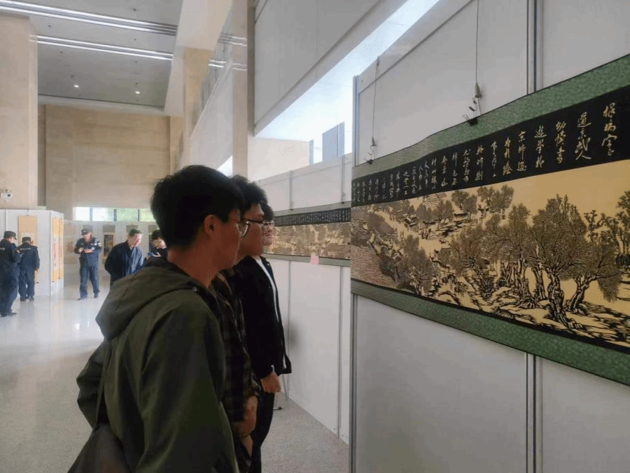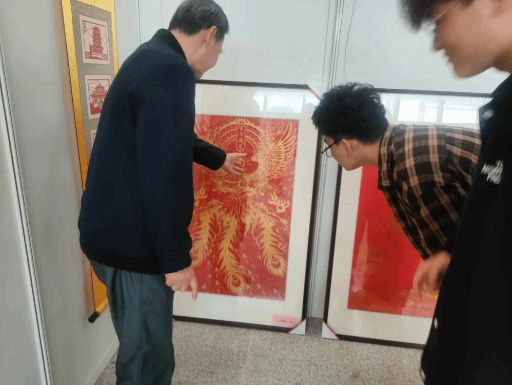 每一幅作品都透露着玲珑剔透、严整优雅,原来在一张纸上也能做出如此复杂的工艺,也能被赋予活力与意义,连小细节都展露着精致。大家在每一幅作品的停留之际都伴随着难以抑制的惊呼声,甚至会凑近了仔细观察这些细微之处,猜测这位剪纸大师当时是怎么样在不破坏原有的基础上,用越来越少的纸完成复杂图案的制作。这不仅需要高超的技艺,还需要有极致的耐心与细致,同学们讨论到此处,不禁更加佩服这位剪纸大师不急不躁、精细敬业的“工匠精神”。